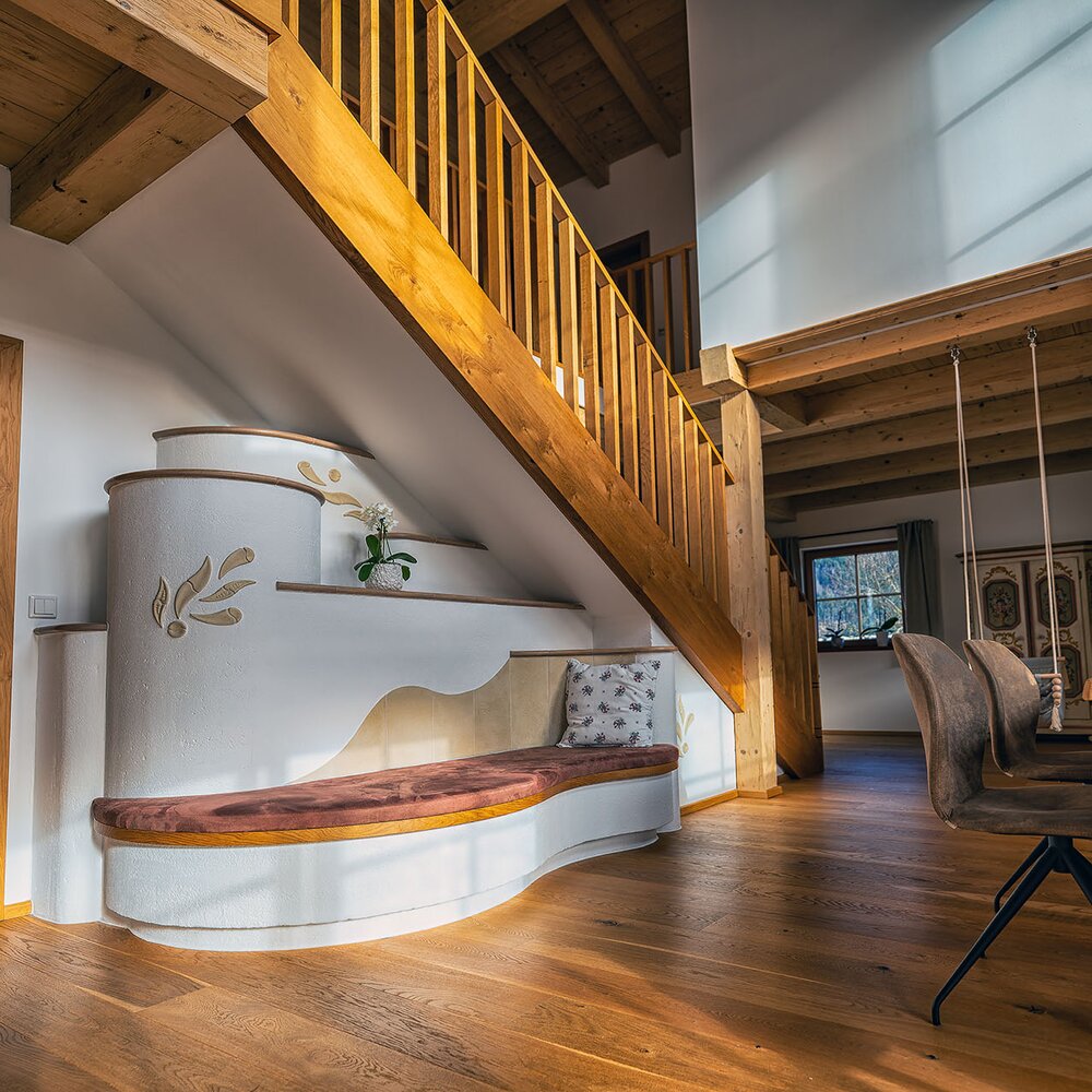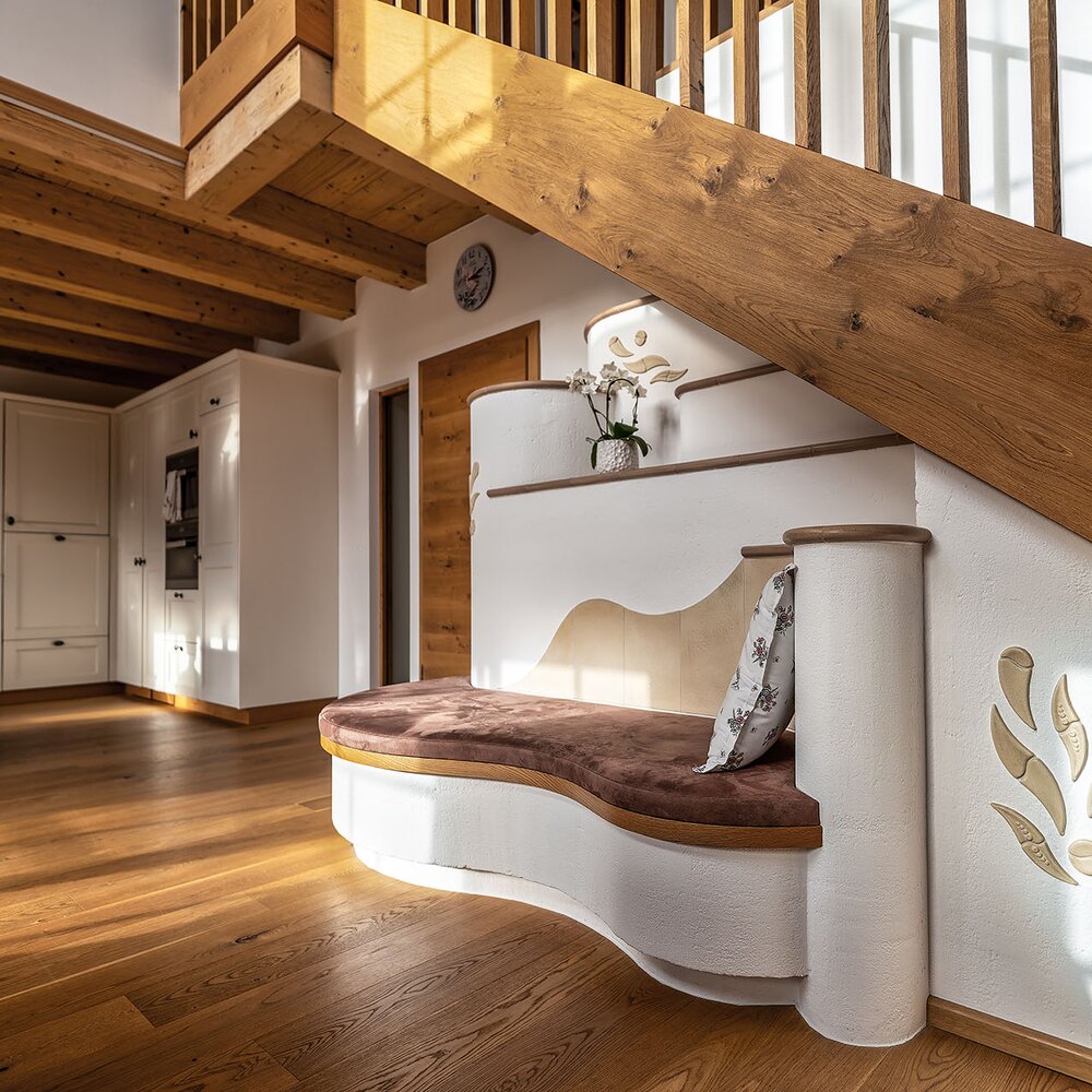 Dieser Kachelofen wurde von uns unter der Treppe geplant und umgesetzt – ganz nach Kundenwunsch. Die Idee: ein Ofen, der an einen Baum erinnert 🌳 – mit weichen Formen, natürlichen Materialien und einer ruhigen, organischen Ausstrahlung.