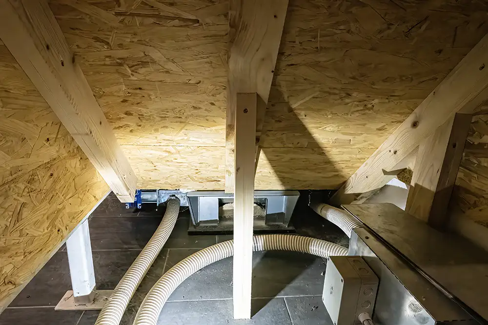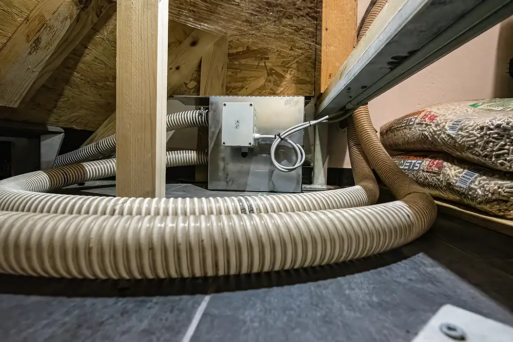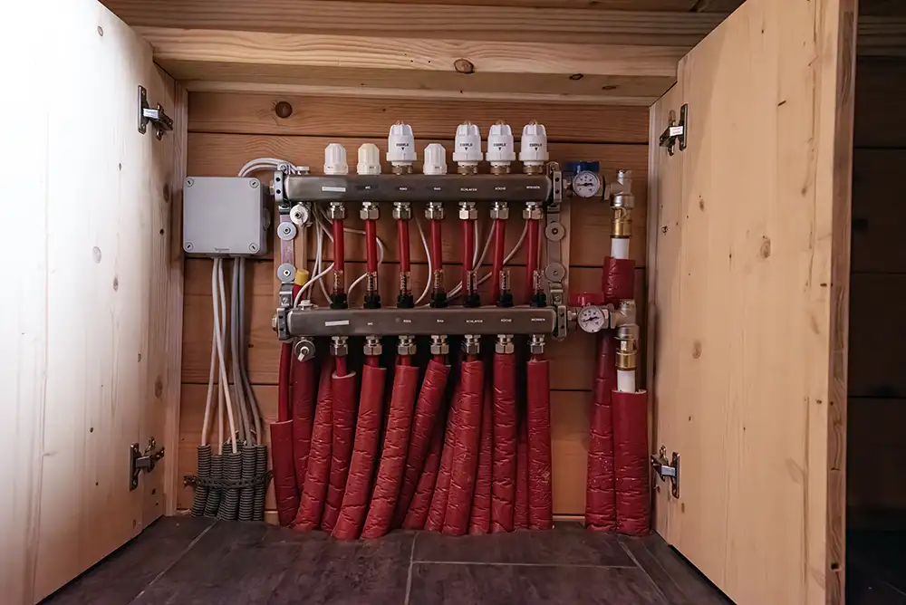 Die erzeugte Wärme wird gespeichert und über ein zentrales System im Haus verteilt – für gleichmäßige und angenehme Temperaturen in allen Räumen.